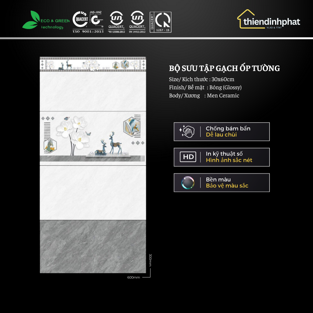 - Bề mặt: BÓNG, chống bám bẩn, dễ lau chùi