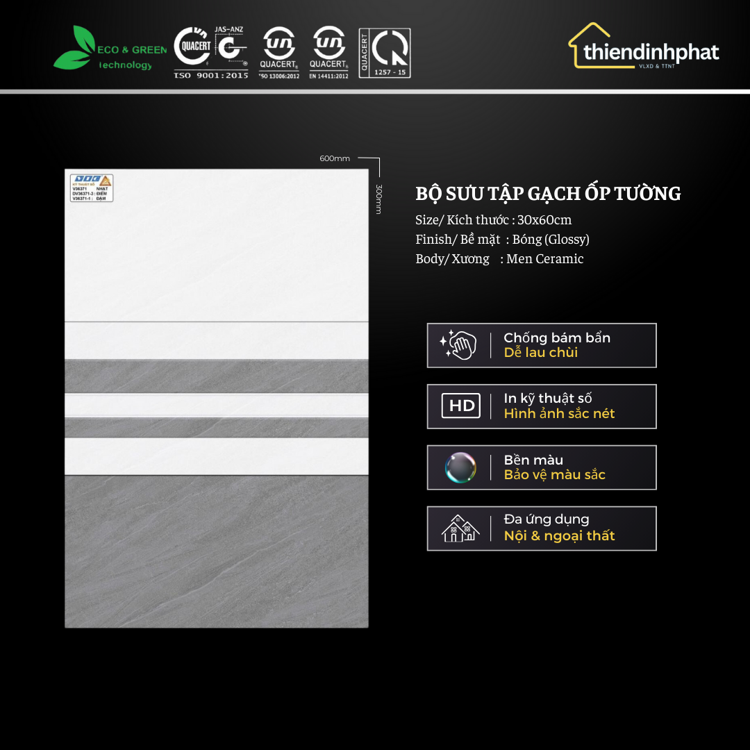 Gạch 30x60cm là một trong những kích thước phổ biến, được yêu thích ứng dụng trong những không gian có diện tích nhỏ như phòng bếp hay phòng tắm nhờ vào lớp men bóng, nhằm mang đến cảm giác sáng rộng, thoải mái cho tổng thể căn phòng.