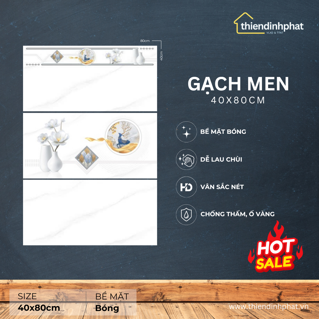 BST 40x80cm có bề mặt bóng và mờ, gây ấn tượng mạnh, tạo cảm giác sáng rộng và sang trọng hơn, lựa chọn xương men kinh tế hoặc xương đá cứng chắc cùng độ hút nước hoàn hảo (<0.5%), gia chủ hoàn toàn có thể lựa chọn bộ sưu tập này để ốp lát cho nhiều khu vực khác nhau như phòng khách, phòng bếp hayTi nhà tắm…
