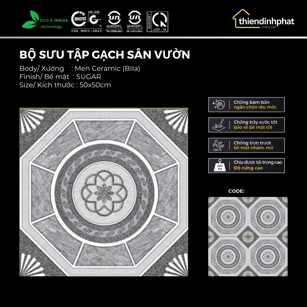 - Bề mặt: MỜ, chống trơn trượt, dễ vệ sinh, chịu tải trọng cao, chống rêu mốc, chông thấm <10%