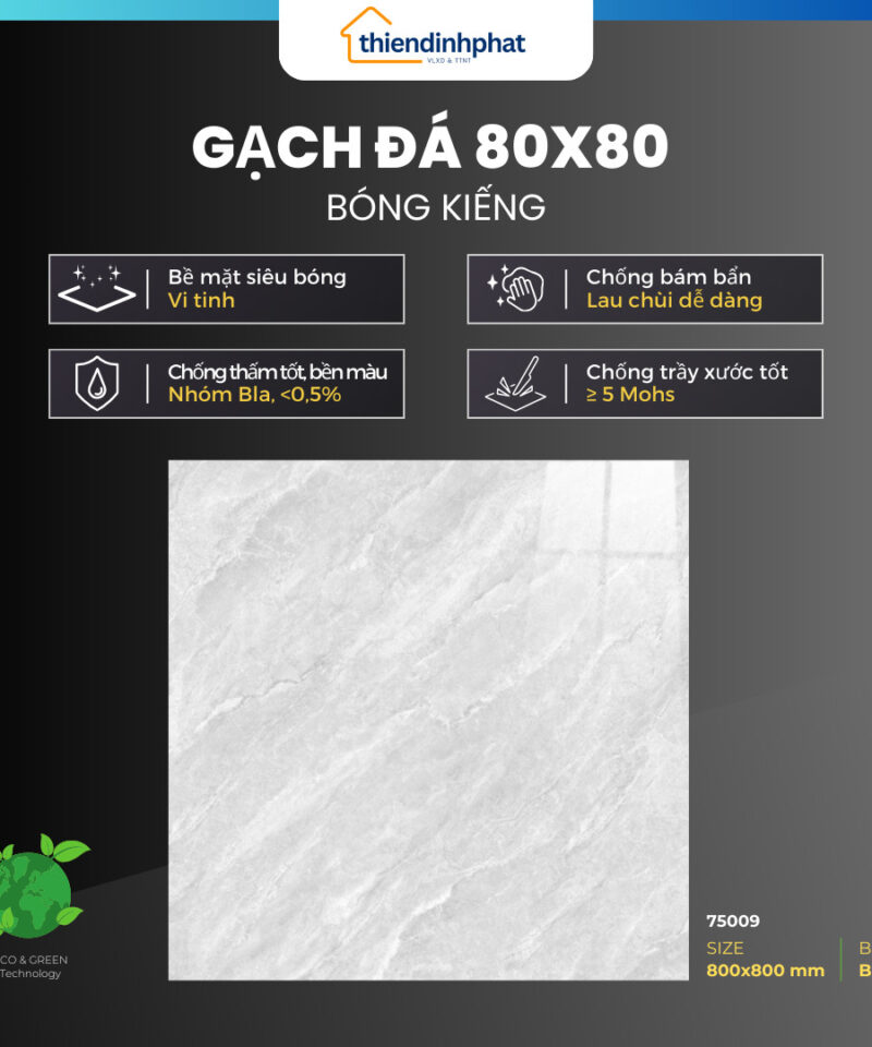– Bề mặt: Vinh tinh (Siêu bóng); Chống thấm; Chống bám bẩn; Bền màu; Chống trầy xước