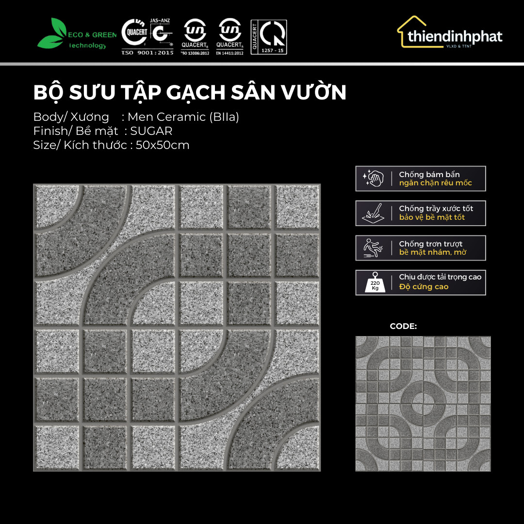 – Bề mặt: Mờ, chống trơn trượt; Chống thấm (<10%), Chống trầy xước; Chịu tải tốt; Bền Màu; Chống rêu mốc